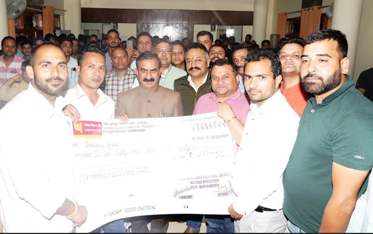 मुख्यमंत्री सुख आश्रय कोष के लिए 2.51 लाख रुपये का चेक किया भेंट